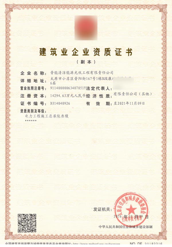 山西某建筑工程公司多項建筑資質